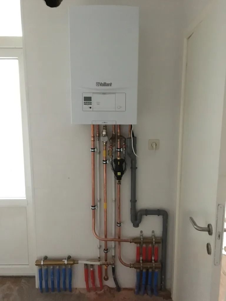 Reprise de chantier, installation d’un chauffe-eau Vaillant et pose d’un collecteur avec tri des tuyauteries passées par le client