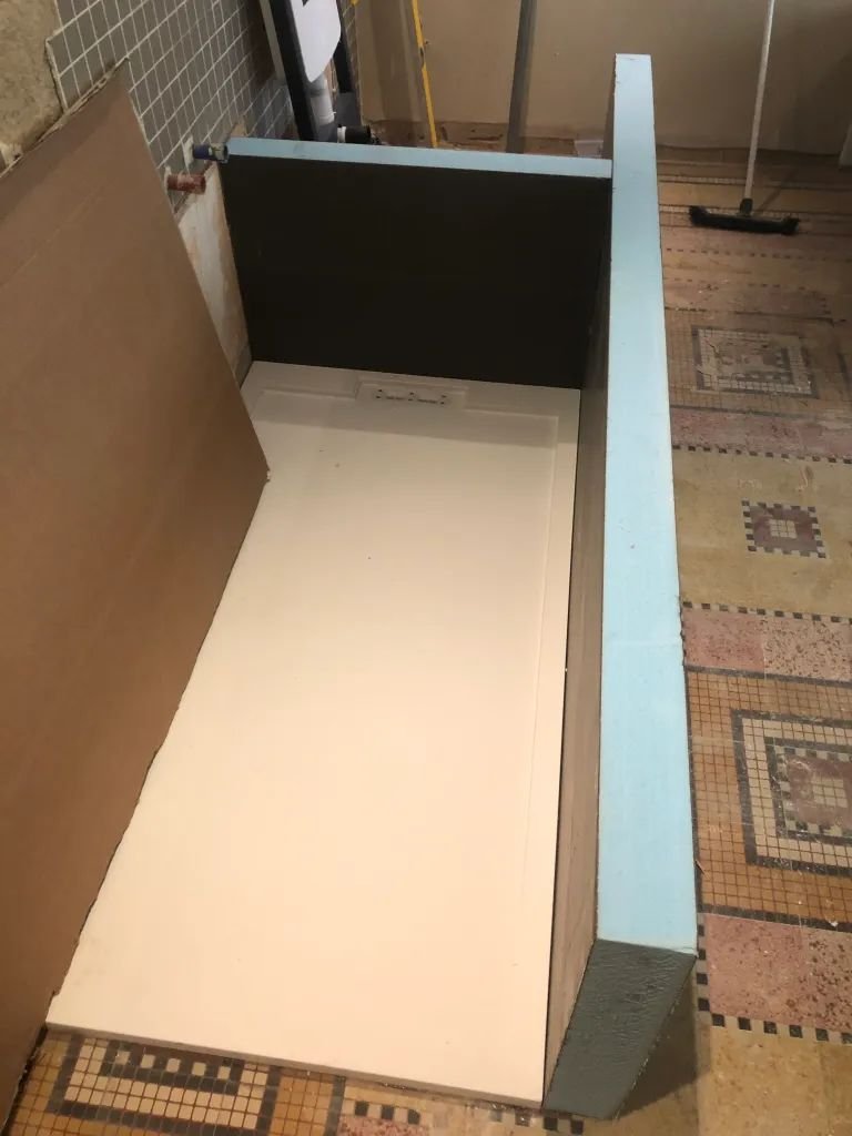 Merci à notre ami Steeve pour la cloison et le carrelage ainsi que ses magnifiques finitions.